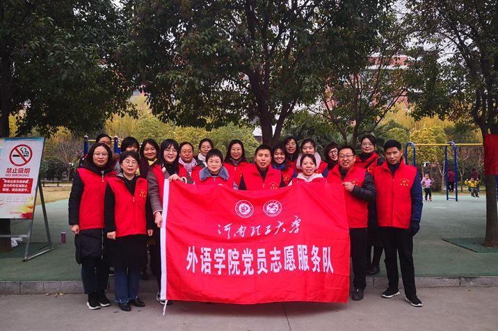 11月30日上午,外国语学院教师党员志愿服务队走进滨河花园小区,为小区居民开展“英语进社区”志愿服务活动。