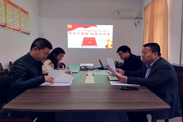 根据学校党委“不忘初心、牢记使命”主题教育工作要求及学院党委主题教育工作具体安排,11月8日,医学院在225会议室召开领导班子对照党章党规找差距专题会议,该院党委领导班子成员参加,该院党委书记余本胜主持会议。