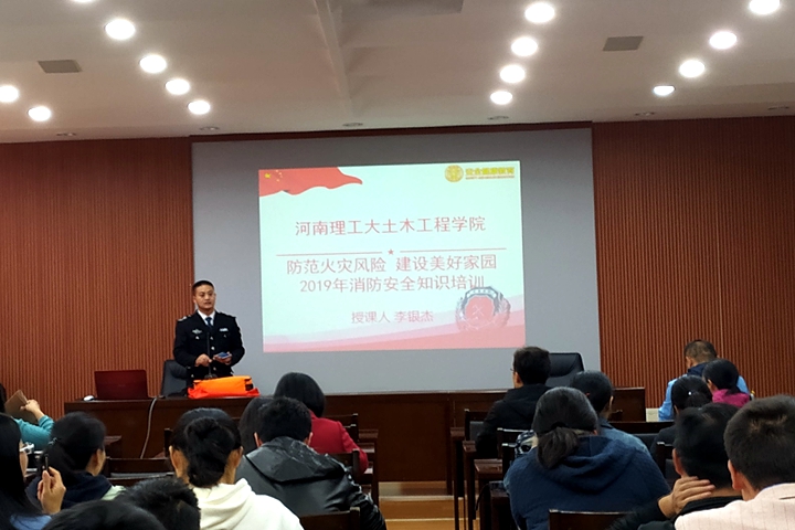 为开展好“119”消防宣传月暨校园安全文化节活动,提高教工消防安全意识,11月5日,土木工程学院在该院一楼报告厅组织了一场以“防范火灾风险,建设美好家园”为主题的消防安全知识培训。培训邀请了焦作市联安防火中心警官李银杰主讲,全院教职员工参加了培训。