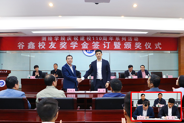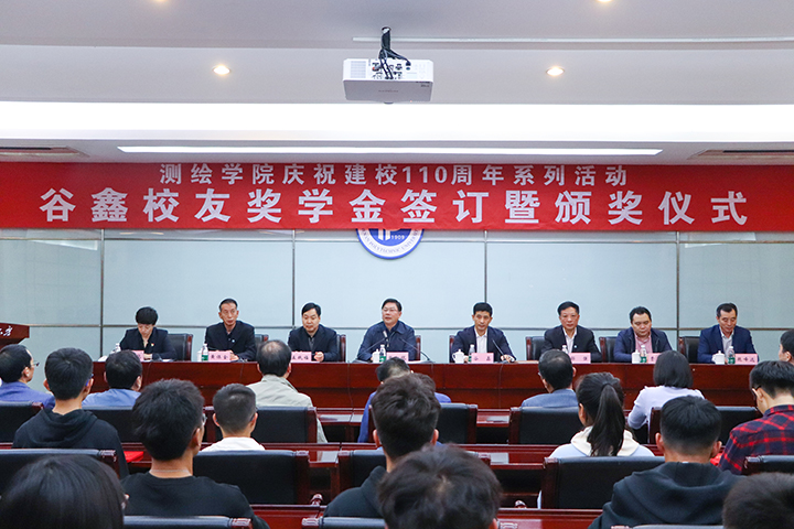 10月9日下午,测绘学院庆祝建校110周年系列活动——谷鑫校友奖学金捐赠暨颁奖仪式在明德楼一楼会议室隆重举行。副校长张锟出席,校庆办常务副主任孟战福、校友与社会合作办公室主任邵强、学生处处长黄保金、教务处副处长曹中秋及测绘学院领导和师生代表参加仪式。仪式由测绘学院党委书记茹艳主持。