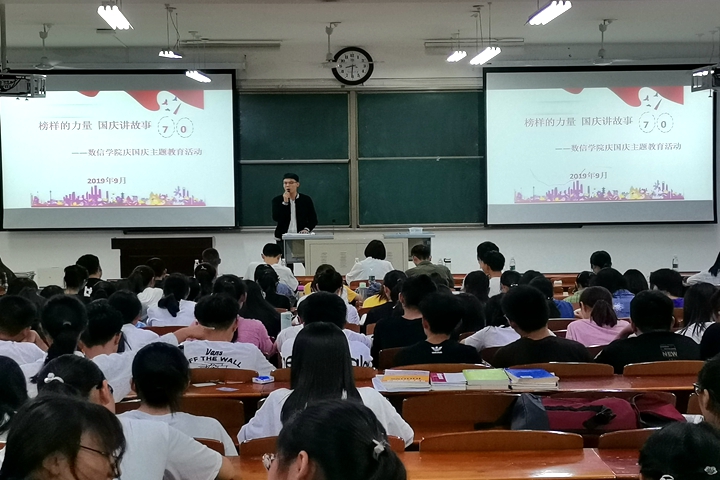在新中国成立七十周年华诞来临之际,为加强对学生的爱国主义和民族精神教育,9月27日,数信学院在会议室3201召开了以“榜样的力量,国庆讲故事”为主题的庆国庆主题教育活动。