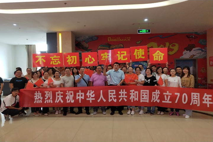 为庆祝中华人民共和国成立70周年,深入开展好“不忘初心、牢记使命”主题教育,9月30日下午,化工学院党委组织师生党员到焦作市中影一个影城观看记录祖国七十年发展变迁的献礼影片《我和我的祖国》。