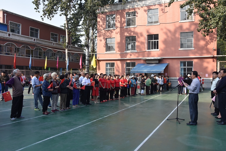 离退休工作处处长杨可臣致开幕辞,他代表离退休工作处向光临今天开幕仪式的老同志们表示欢迎。他说,今年是新中国成立70周年、学校建校110周年大喜之年,上学期学校对全校中层领导班子进行了换届,离退处领导班子成员也进行了调整,新学期伊始,学校又着重安排了开展“不忘初心、牢记使命”主题教育等12项重点工作。离退处结合实际,一是认真做好主题教育,提升服务管理水平;二是加快离退休工作“三化”建设,做好宣传工作;三是完善联系老同志制度,加大走访慰问;四是进一步激发老年文体协会活力,丰富活动内容等方面工作,不断提升老同志幸福感、获得感。希望老同志们在活动月中,积极参与、增强体育锻炼意识,提高身体素质,增进交流,促进健康。