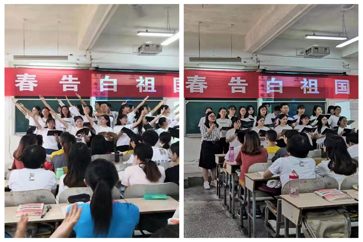 9月25日,《毛泽东思想和中国特色社会主义理论体系概论》课程米卫娜老师的课堂,来自土木、化工学院的大三学生,自信昂扬,用嘹亮的歌声和动人的诗歌深情告白祖国,以此来寄托对伟大祖国的热爱和生活在新时代的无限自豪。