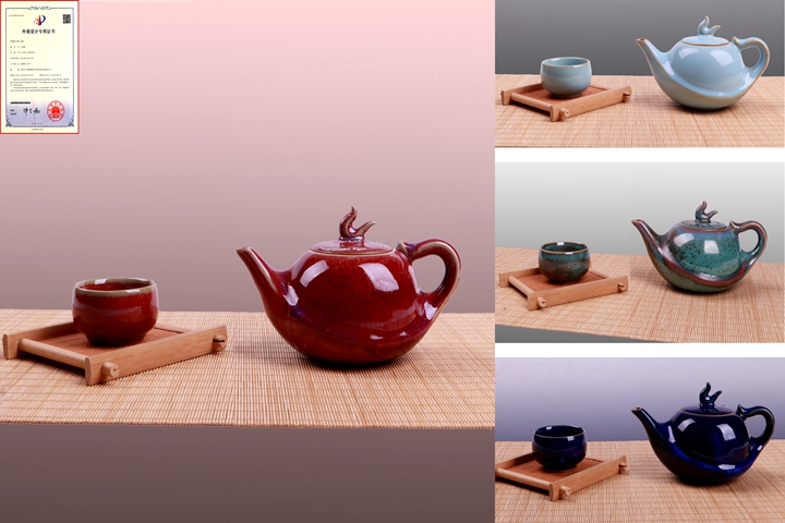 该壶选用钧瓷这一富有中原文化底蕴的陶瓷形式进行产品具象表达。钧瓷作为国家级重点非物质文化遗产,以其神奇的窑变艺术和深厚的文化积淀闻名于世,钧瓷茶壶作为中国瓷文化与茶文化相结合的产物,集聚中国传统文化之美,体现着中国文化特有的品味和情趣。该作品由建艺学院工业设计系教师于向涛带领团队进行设计创作,从2018年起开始构思,数次修改完善设计图纸,多次奔赴学院创新实践基地锦丰源瓷业有限公司与一线工匠师傅潜心求教器形特点,反复烧制定型,“明德壶”最终烧制圆满成功。