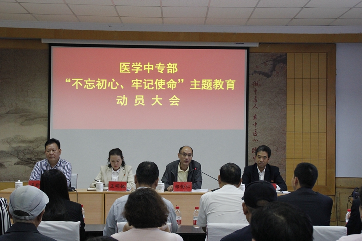 为贯彻落实学校党委“不忘初心、牢记使命”主题教育工作要求, 9月17日下午,医学中专部在学术报告厅召开了“不忘初心、牢记使命”主题教育动员大会。学校第七巡回指导组组长郑伦仁到会指导并讲话,中专部全体班子成员、中层干部、党员参加大会,会议由中专部主任李培富主持。