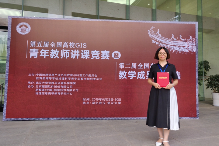 6月29日至6月30日,“第五届全国高等学校GIS青年教师讲课竞赛”(以下简称青年教师讲课竞赛)在武汉大学顺利举行,共有来自武汉大学、南京大学、中山大学、河南理工大学等高校的72位老师参赛。经过竞赛资格公示、预赛、决赛等环节,王莉老师以其创新的思维、生动的讲授和精美的课件脱颖而出,荣获一等奖。