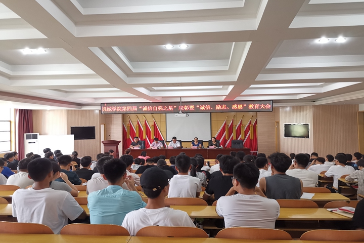 为表彰先进,激励看齐,6月11日下午,机械学院在该院205会议室举办了第四届“诚信自强之星”表彰暨“诚信、励志、感恩”教育大会。学生工作部(处)副部(处)长高志扬、该院党委副书记许荣梅、学校学生资助管理中心负责人、该院各年级辅导员、受表彰学生代表及各班级班长、生活委员180余人参加了大会。