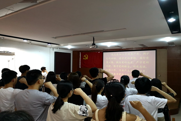 活动最后,由毕业生党员代表王斌带领全体与会党员同志重温入党誓词,通过每位毕业生党员在党旗下的庄严宣誓再次强化党员们的责任感,让党性常存于心,牢记使命,时刻以先进共产党员的标准严格要求自己。