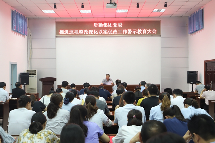 6月4日下午,后勤集团党委在培训教室召开推进巡视整改深化以案促改工作警示教育大会。处(集团)全体处级领导干部、中层管理人员和全体党员参加会议。会议由处(集团)党委书记王勇主持。