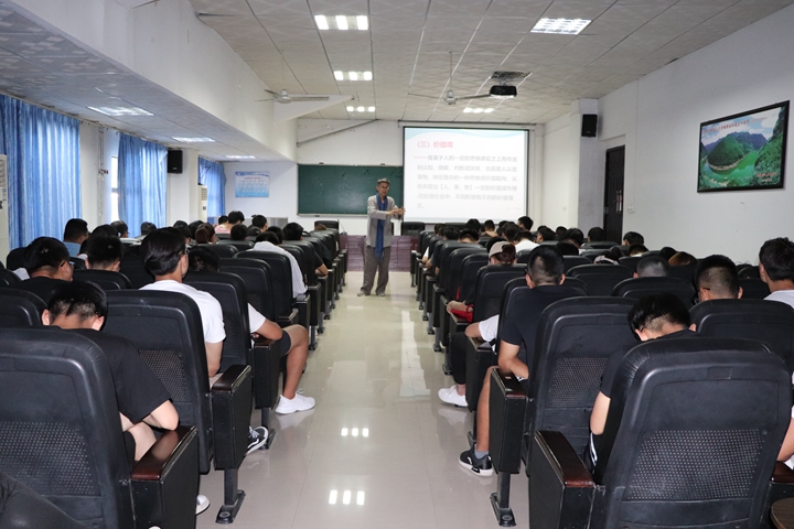报告会上,杨黎明先提出五个问题:一是我们面临的对象:自然和社会。二是我们树立什么样的世界观、人生观、价值观。三是定位于正名之后树立梦想、确定方向。四是方法论问题。五是期盼与寄语。然后通过从古至今的文人诗句,文化名著为同学们解释了什么是自然、通过对人的介绍让同学们明白了什么是社会,什么是马克思主义世界观的定义,使同学们重新认识什么是正确的世界观、人生观、价值观。同学们感受最深的是杨黎明通过《易经》让同学们知道什么是“天、地、人”,又引用孔子的“为政必先正名”和管子的“守慎正名,伪诈自止”诠释了正名的重要性。通过引用习近平总书记的寄语“少年要敢于有梦”“有梦想,有机会,有奋斗”来鼓励同学们,作为当代大学生要有梦想,要有方向,一定要多读书,读好书,从书籍中寻找解决问题的方法。
