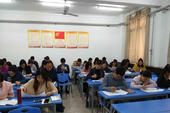 本次政治理论知识测试在党委宣传部的命题范围内,侧重考查习近平新时代中国特色社会主义思想、党的十九大精神、习近平系列重要讲话论述等,尤其突出对全国教育大会精神、党的十九大报告关于发展教育事业的论述、办好思想政治理论课等相关内容的掌握。考试由学院党政办组织命题,各党支部提前集中学习,党政办、学工办负责组织考试,考场秩序组织有序、严肃安静、参试人员认真答题。