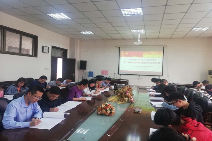 为认真贯彻省委第七巡视组反馈意见,做好“两学一做”学习教育工作,夯实师生思想政治理论基础,4月30日下午,安全学院在该院304会议室举行了安全学院2019年思想政治理论知识竞赛,从该院11个师生党支部中抽选出的33名党员代表参加了竞赛。