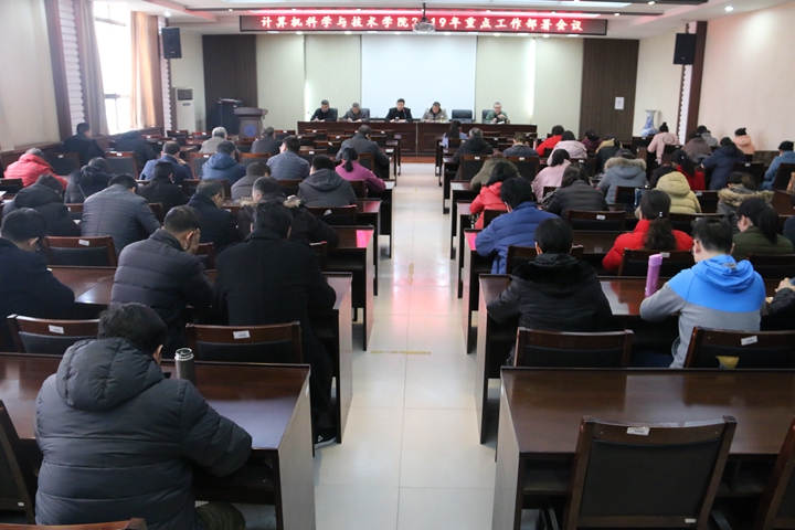 2月26日下午,计算机学院在院楼201会议室召开全体教职工大会,传达学校2019年党政重点工作,安排部署学院2019年重点工作。会议由该院院长贾宗璞主持,全院教职工参加。