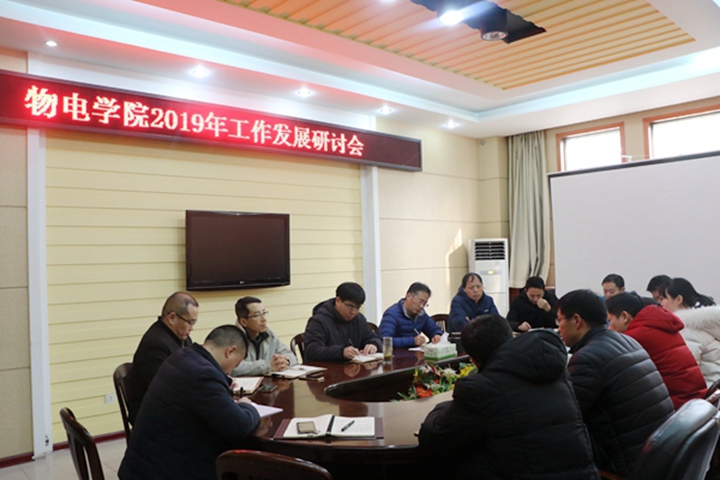 为深入贯彻学校第二次党代会精神,推进学校“十三五”发展规划的落实,更好地谋划2019年工作思路,2月22日,物电学院在111会议室召开2019年工作发展研讨会。该院全体党政负责人、机关各科室负责人,教学、学科、研究生秘书,党政办公室等相关人员参加会议,该院院长张长森主持会议。