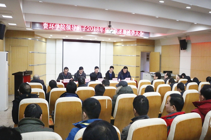 1月3日下午,资环学院召开2018年度领导班子述职述廉述学暨院长抓发展述职大会。校党委书记邹友峰出席会议,党委组织部副处级组织员秦建辉及学院领导班子成员、全体教职工参加会议。会议由资环学院党委书记张贵江主持。