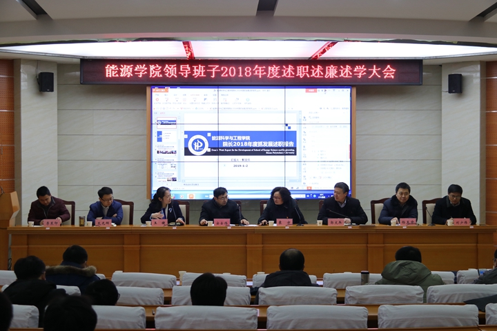 1月2日,能源学院在该院院楼104学术报告厅召开2018年度领导班子述职述廉述学大会。校党委副书记安士伟、校纪委副书记袁方组成的考核组莅临该院,该院全体教职工参加大会。会议由该院党委书记王婕主持。