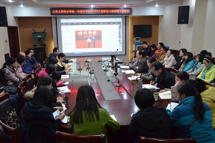 为充分发挥时代楷模张玉滚的榜样激励作用,加强学院师德师风建设,12月25日下午,外国语学院在文综楼311会议室举行学习时代楷模张玉滚师德专题教育报告会,该院全体教职工参加学习。会议由该院党委书记罗绍河主持。