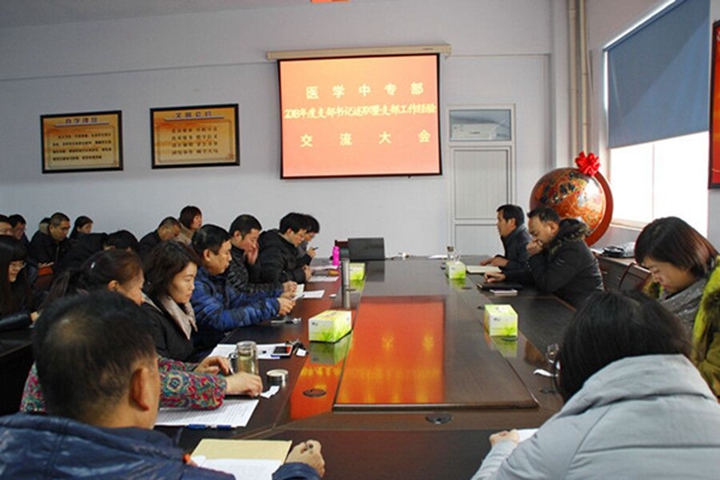 12月25日下午,医学中专部在护理楼二楼会议室召开2018年度党支部书记述职暨支部工作经验交流会。中专部党委副书记刘新生,各总支书记、支部书记及支委成员共40余人参加了会议。