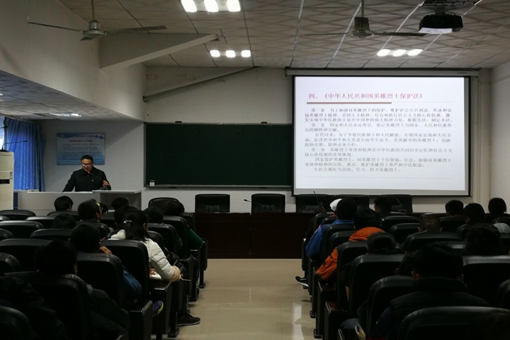 随后,张纳新传达了《中共河南理工大学委员会关于开展法治宣传教育月活动的通知》文件精神,并对活动的具体实施作出要求。他强调,深入学习贯彻“七五”普法规划,推动学校法治建设,明确重点对象,明确工作内容,创新方式方法,推动法治文化建设,不断深化法治宣传教育工作。会后,张纳新进行专题授课,对《中华人民共和国英雄烈士保护法》《国防教育法》等内容进行了深入解读。