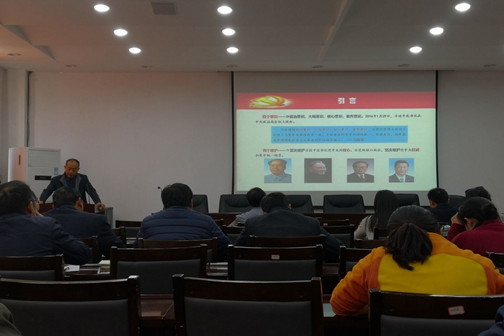 朱天明从正确理解领导核心和中央权威的深刻内涵,深刻认识新时代“两个维护”的重大意义,新时代自觉践行“两个维护”的基本要求三个方面深入浅出的对新的历史条件下牢固树立政治意识、大局意识、核心意识、看齐意识,坚决维护习近平总书记党中央的核心、全党的核心地位,坚决维护党中央权威和集中统一领导的重大意义进行了阐述,指出树立“四个意识”,践行“两个维护”是党最重要的政治纪律要求,是应对多元化的风险挑战和完成新时代使命任务的迫切需要,应该体现在学院每个教工的实际工作和生活中,保证党的路线方针政策自上而下得到贯彻落实。
