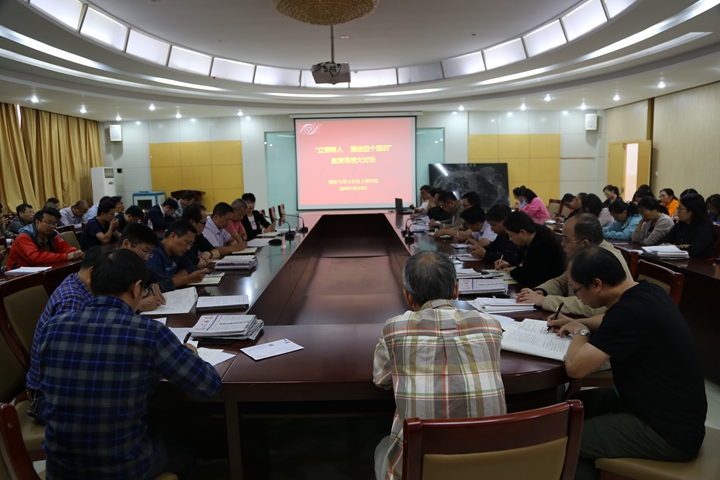 10月9日下午,测绘学院在院一楼会议室召开以“立德树人,推进四个回归” 为核心教育思想主题交流会,该院全体教职工参加会议。会议由学院党委书记王艳红主持。