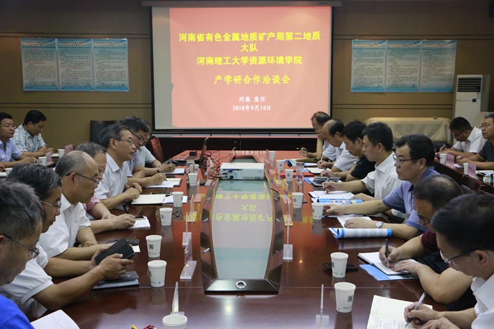 9月10日上午,《资源环境学院、河南省有色金属地质矿产局第二地质大队战略合作框架协议》签署仪式及产学研合作洽谈会在我校资环学院3D会议室举行。河南省有色地矿局第二地质大队队长刘中杰、河南省有色地矿局首席专家杨群周、队首席专家许令兵、副书记张建新,资环学院院长齐永安、副院长金毅及双方相关专家学者参加仪式。会议由金毅主持。