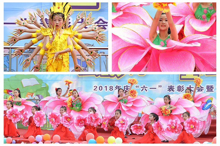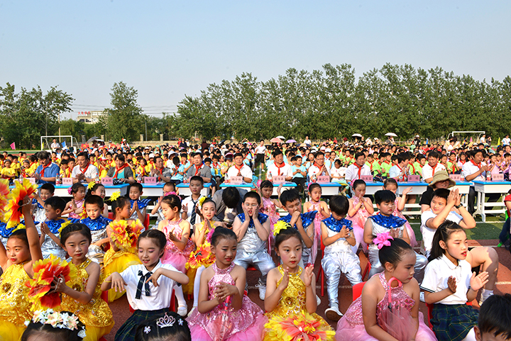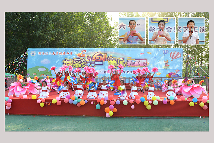 随后的文艺汇演上,师生们精心准备的文艺节目精彩纷呈。开场舞《花儿向阳开》等舞蹈节目带观众进入快乐的律动中,歌曲《青花瓷》、童声合唱《送别》让观众们感受到了“童音绕梁”的乐趣,《读唐诗》《诗歌伴我成长》等节目让我们深刻感受到中华文化的智慧与魅力,惊艳亮相的舞蹈《千手观音》、欢乐出场的光头强、功夫熊猫、汪汪队等卡通人物更是将现场的气氛推向了高潮。毕业班的情景剧《难忘小学时光》分外触动人心。最后,伴随着欢快的舞蹈《七彩梦想》,活动圆满落幕,师生们度过了一个快乐的节日。
