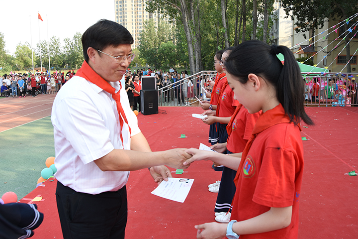 大会表彰了一年来涌现的优秀学生干部、三好学生和十佳小标兵,杨小林、翟传森等分别为获奖学生代表颁奖。