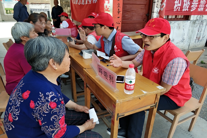 5月4日上午,一附院组织了青年志愿者义诊服务队,队伍由该院党委副书记王学利和团委书记何波带领,一行15人共同奔赴博爱县寨豁乡大底村,为该村村民开展义诊活动。活动持续到中午,老百姓们就自己的身体情况分别接受了专科医生的指导和检查,带着满意带着笑容陆陆续续散去,直到做完最后一个心电图,该院才结束活动。