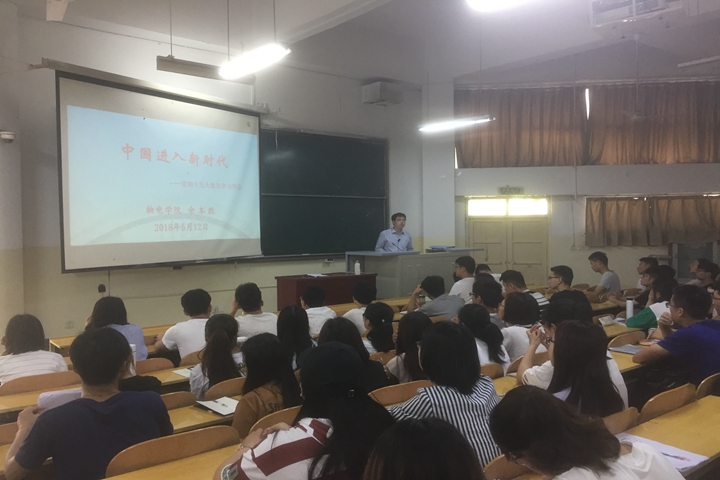 为深入学习贯彻党的十九大及全国两会精神,深入推进“两学一做”学习教育常态化制度化,贯彻落实党组织书记抓基层党建工作,按照学院党委的安排部署,近日,物电学院党委书记余本胜、院长张长森、党委副书记王丙新及各党支部书记分别开展了为师生党员、发展对象、入党积极分子讲党课活动。
