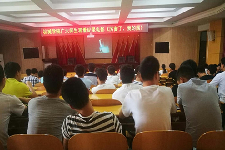 为使广大师生深切感受十八大以来中国特色社会主义建设取得的历史性伟大成就,增强民族自尊心和自豪感,进而深入学习领会十九大精神,坚定“四个自信”,肩负起中华民族伟大复兴的历史使命感和时代责任感,5月12日,机械学院在该院205学术报告厅组织全院师生分多批次集中观看了记录电影《厉害了,我的国》。