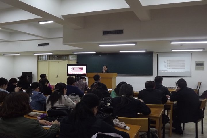 4月24日,图书馆副馆长李明理在学术交流厅为全体职工传达学习了党的十九届三中全会会议精神。