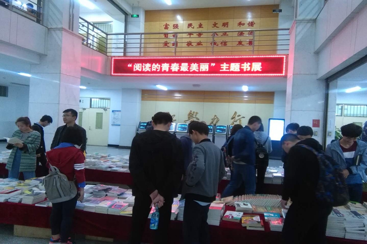 宠辱不惊,闲看书卷奥秘;去留无意,漫随书卷人生。此次主题书展列出了大学生必读的100本经典书目,为大学生的阅读指引了方向。展书覆盖面尤为广泛,大到历史哲学、天文地理、名家名作;小到励志短句、单词词汇、幽默漫画,涵盖政治、经济、天文、地理、文学、理学等多个领域,通古贯今,涵盖内外。书展现场,一个个沉醉书香的身影,一个个痴迷阅读的眼神,无一不给来者以视觉的冲击,心灵的震撼。