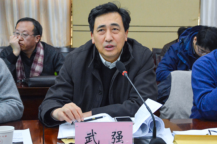在观看了学校简介片后,武强代表专家组对学位授权点的合格评估提出了工作要求,对评估意义、评估重点和评估程序进行了说明。