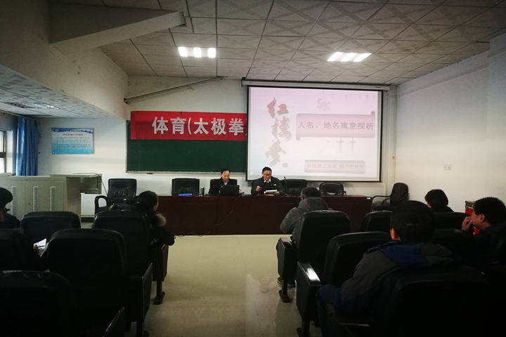 为加强中华传统文化教育,提升校园文化软实力,促进传统文化和校园文化相融合,12月19日下午,体育学院在该院会议室举办传统文化进校园专题讲座。活动邀请了文法学院院长穆乃堂以“红楼梦与人生”为主题进行主讲,学院教师60余人聆听了讲座。讲座由该院党委书记张纳新主持,。