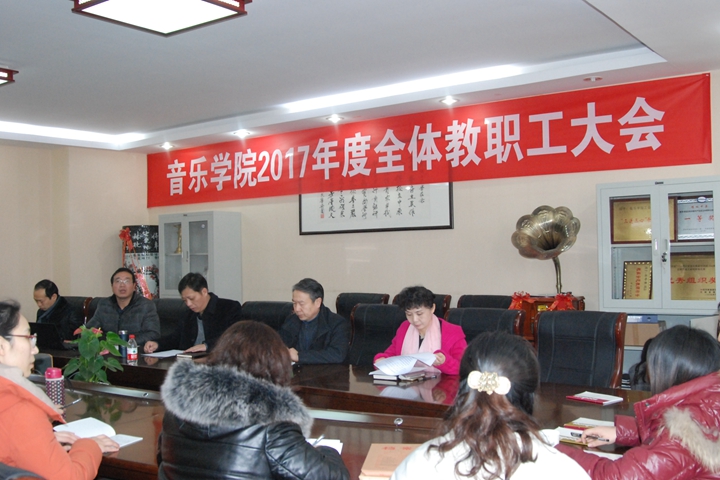 12月15日下午,音乐学院在文综楼619会议室召开2017年度全体教职工大会,该院领导和全体教职工参加会议。会议由该院党总支书记杨玉海主持。