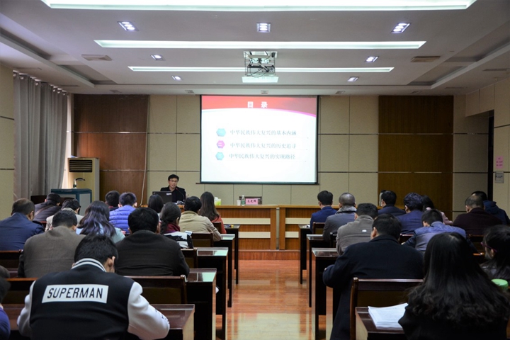 为深入学习领会贯彻党的十九大精神,11月22日下午,能源学院特邀河南省青年宣讲团专家、我校马克思主义学院孔祥增老师在该院201会议室作题为《实现中华民族伟大复兴的学习与解读》的报告。该院党员教工与部分学生参加了此次报告会。报告会由支光辉主持。