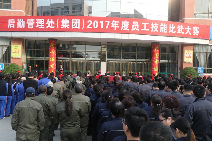 为深入贯彻习近平总书记十九大重要讲话精神,充分发挥党员的示范引领作用,全面提升员工的理论素质和业务技能,激发员工学知识、钻技术、争先进的积极性,营造以比促学、争先创优的浓厚氛围,切实提高后勤服务保障水平,满足学校和师生对更优质高效后勤服务的需求,11月3日上午,后勤管理处(集团)在学子餐厅南广场举行2017年度员工技能比武大赛。副校长翟传森出席开幕式,宣传部、学生工作部、校工会、校团委、校长办公室等职能部门负责人参加开幕式,后勤10个工种、200多名员工参加比武。开幕式由集团党委书记王勇主持。