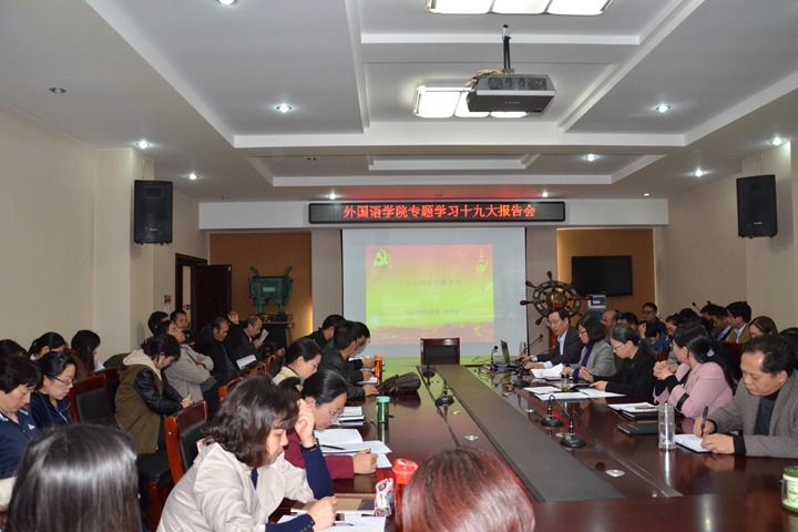 为抓紧学习和深刻领会十九大精神,10月24日下午,外国语学院在文综楼311会议室举行 “十九大报告专题学习会”,该院全体教职工参加了学习会。