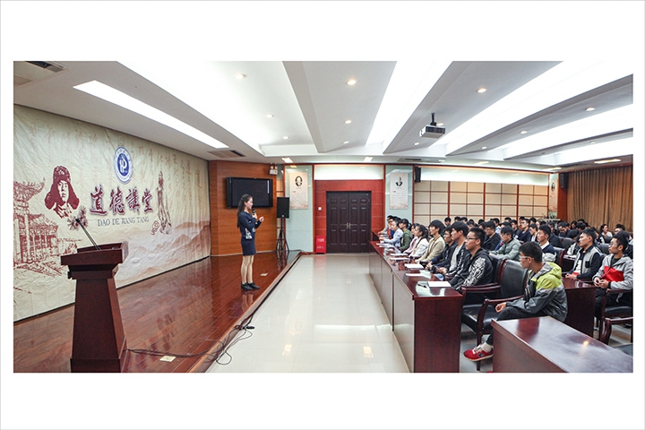 道德讲堂是我校为大力弘扬中华民族优秀传统美德,引导师生培育和践行社会主义核心价值观而精心打造的一项大型道德宣讲活动。此次道德讲堂由“学模范”“讲故事”“诵经典”“做自省”“谈感受”“唱歌曲”六个环节构成。在“学模范”环节,大家观看了“2010感动中国十大人物”之“当代雷锋”郭明义及“2012感动中国十大人物”之“最美女教师”张丽莉的感人事迹,深切领会了郭明义用一生执着来诠释的“好人”的涵义以及张丽莉用大爱浇灌祖国花朵的精神境界,在“讲故事”环节,大家聆听了我校安全学院朱林同学见义勇为勇救落水老人的先进事迹;在“诵经典”环节,大家一起诵读了“天行健,君子以自强不息;地势坤,君子以厚德载物”“吾日三省吾身”“勤勉求是”等经典道德名言;“做自省”环节,大家围绕是否“心诚”“情真”“形正”进行了自我反省;“谈感受”环节,同学们结合自身经历,畅谈内心感悟,分享学习心得。道德讲堂在手语歌舞《感恩的心》中结束。