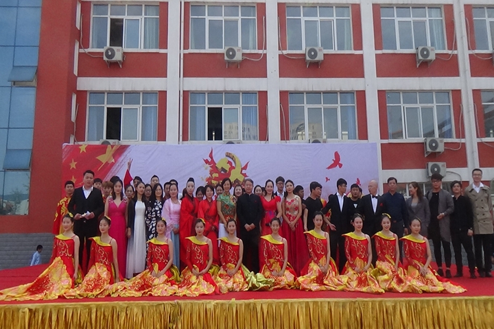 “拜师礼”仪式结束以后,由我校音乐学院的师生们为此次活动点亮风采。带领大家步入艺术殿堂,欣赏艺术之美,感受艺术的魅力。开场由刘文东等四位同学以及该院舞蹈团为大家带来歌伴舞《中国美》,曲目慷慨激昂,充分表达了我们对祖国的热爱与尊敬,更是在“十九大”即将召开之际,以此次文艺演出彰显我们为祖国的美丽而骄傲、自豪;教师孙媛媛带领学生为大家带来二胡齐奏《拔根芦菜花》,全曲音调在明快、奔放、昂扬的基调中糅合了一点委婉的因素,刚柔相济,兼融江南与江北和劳动歌曲与抒情山歌的特色,赢得台下观众一片掌声;张岩、位忠伟等该院师生,带来了男声小合唱《回娘家》《啊朋友再见》,演唱表演的十分到位,台下观众时而欢笑时而忧伤;紧接着是音乐学院舞蹈团的劲舞表演《if》,全场活力四射,充分体现出了我校学生的朝气蓬勃;随后是流行联唱,陈博文、刘华毓、方炳玥、尚若宇分别演唱了《葡萄成熟时》《眼鼻嘴》《流着泪说分手》《夜空中最亮的星》。教师李瞳的单簧管独奏《我心依旧》曲调悠长婉转,凄美动听;接下来由我校研究生朱肖朴带来了孩子们最喜欢的魔术表演《魔术世界》;教师董荻激情演唱了《骏马奔驰保边疆》,全曲慷慨激昂,情感饱满;随后教师董荻和刘燕男女对唱《家在心头》,充分表达出了出门在外的人对家里的思念;音乐学院舞蹈团也舞动起《掀起你的红盖头》,引的台下观众情不自禁跟着一起跳起来。紧接着迎来的本次演出的高潮,由音乐学院院长李新现深情演唱《在那遥远的地方》《父亲》,李新现用心演唱,使台下老师家长和学生们纷纷潸然落泪,李新现也多次哽咽,用情用心,将自己的爱通过音乐表达出来。最后董荻、刘燕、孟天屹、刘文东和音乐学院舞蹈团给大家带来了歌伴舞《梦想的旗帜》,引领大家朝着自己的梦想奋勇向前。