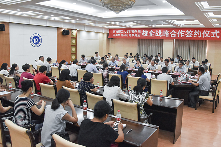 河南华凯会计师事务所首席合伙人赵文睿作为签约双方代表在对合作双方进行简要介绍后,就协议内容作出汇报。协议主要包括教学科研合作、实习基地和人才基地合作、共建“河南华凯会计师事务所焦作分所”及设立“华凯奖学金”等5个方面。他指出,依托我校严谨的治学态度和雄厚的科研实力,结合河南华凯会计师事务所丰富的实践经验和积极的创新理念,一定能让合作快速落地并开花结果,为培养优秀的实践型会计人才,为地方经济建设做出应有的贡献。
