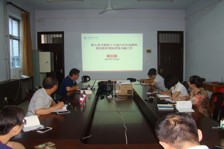 7月4日下午,继续教育学院党总支书记张世锋在该院会议室以“深入学习党的十八届六中全会精神,切实抓好理论武装头脑工作”为主题,为该院党员作了“两学一做”学习教育专题党课。该院全体党员和入党积极分子参加听课。