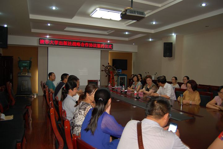 协议签署仪式之前,赵昉就双方合作的主要内容做了详细说明,双方将在研发外语数字化互动教学平台的基础上开展“泛在式外语教学模式研究与实践”项目,探讨在互联网背景下,如何创新“课堂教学+PC端+手机端”的“泛在教学”模式,提高学生的外语能力,特别是听说能力。本研究的内容包括混合式教学过程的设计、实施、管理和评价体系等教学全过程。研究成果主要以数字化教学资源开发、教材与专著出版及论文发表的形式得以体现。最后,郝建华发表了热情洋溢的讲话,她希望发挥双方在外语教学管理、科研、师资等方面的优势,为该院教师提供一个教学成果转化与展示的平台,进而提升该院的综合实力,提高清华大学出版社外语分社的教学资源建设水平。