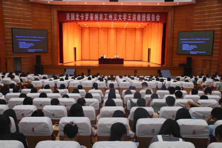 6月29日晚,美国北卡罗莱纳农工州立大学交流项目宣讲会在我校明德楼音乐厅举办。北卡罗莱纳农工州立大学教授王洪担任主讲人,财经学院院长梁丽娟参加宣讲会,该院部分教师和2016级会计、财管、金融、国贸和人力等5个专业共计500余名学生参加了此次宣讲会。宣讲会由国际教育学院副院长朱林主持。