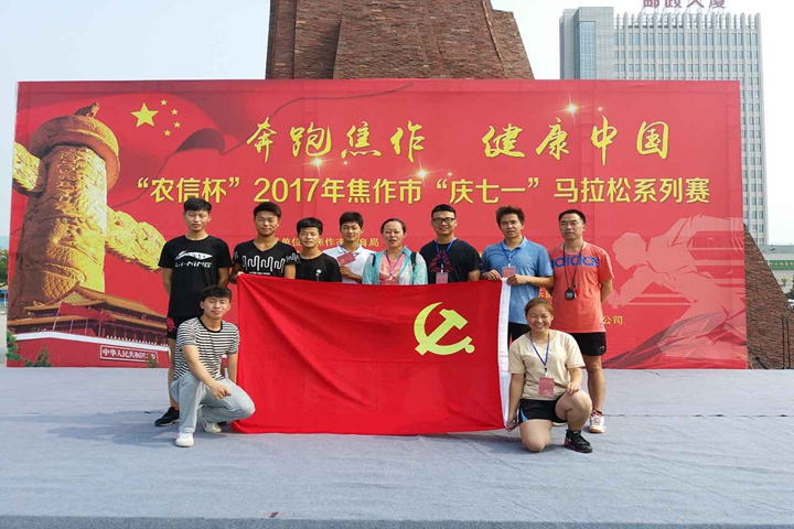 7月1日,在中国共产党建党96周年之际,我校体育学院党员志愿者服务队执裁奔跑焦作健康中国“农信杯”2017焦作市“庆七一”马拉松系列赛,该院师生党员用志愿服务的形式庆祝建党96周年,助力焦作四城联创。