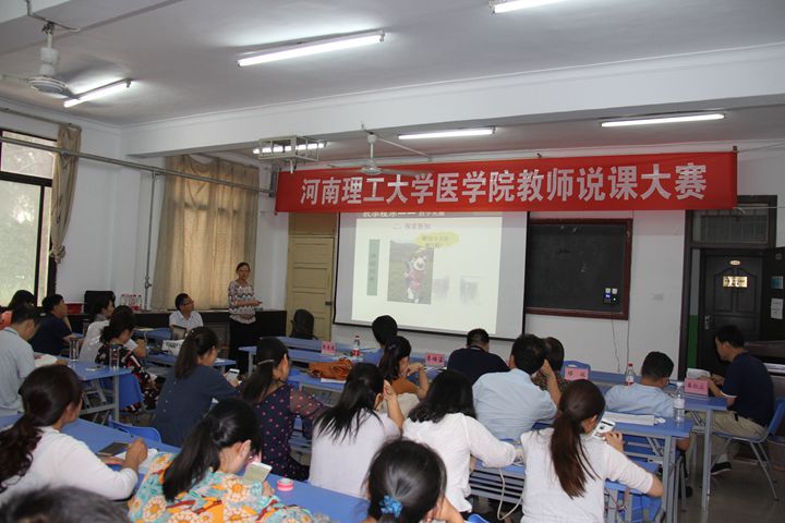 为扎实推进本科教学审核评估自评整改工作,以评促建,以评促改,医学院及时召开迎评工作动员会,落实任务,明确责任,做好本科教学各环节的整改与规范工作,该院于6月27日下午举行了教师说课比赛,该院各系选拔的11名中青年教师参赛,该院全体教师观摩比赛。