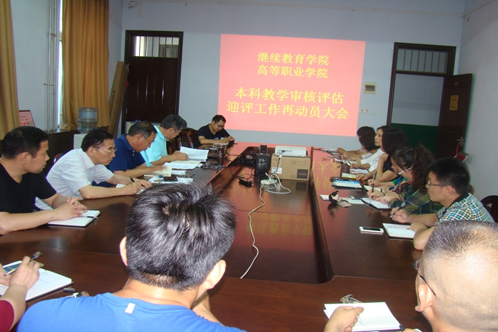 6月20日下午,为贯彻落实学校“本科教学工作审核评估迎评工作会议”精神,继续教育学院(高等职业学院)在该院会议室召开本科教学审核评估迎评工作再动员大会,该院党政负责人和教职工20余人参加了会议。会议由该院院长王宝山主持。