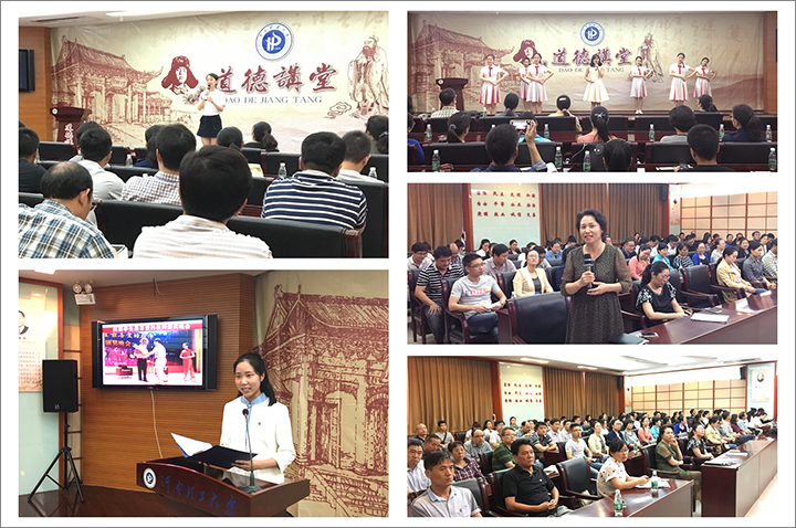 道德讲堂共分三次走进机关党委,全面覆盖了机关党委所有党支部,使机关干部职工接受了道德洗礼,着力培育和践行了社会主义核心价值观,有效提升了机关广大干部职工的思想道德素质,为形成良好校园文明风尚贡献了力量。